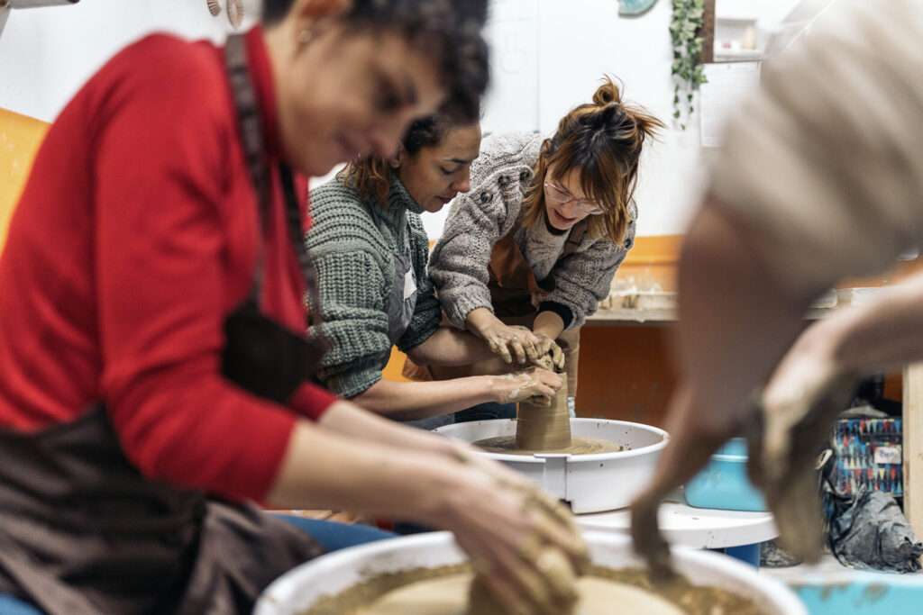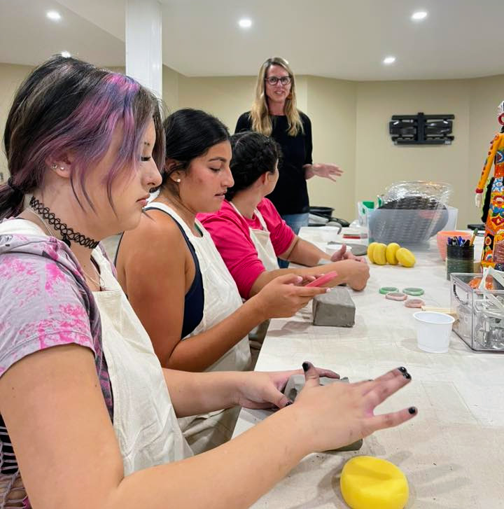 Day of horsemanship, farm visits with alpacas, games, and pottery making in studio.